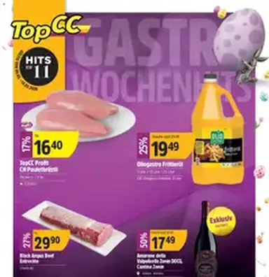 Was werden Sie heute kochen? Wenn Sie bereits eine Idee haben und nicht alle Zutaten haben, vergessen Sie nicht, einen Blick in die aktuelle TopCC-Broschüre zu werfen. Es ist voll von reduzierten Preisen, interessanten Sonderangeboten und einer großen Auswahl an Produkten.